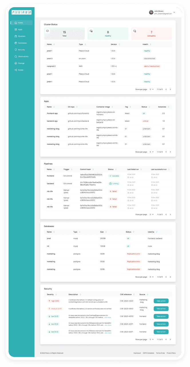 App ManagementDeploy and manage applications easily through Pleaco’s user-friendly interface.